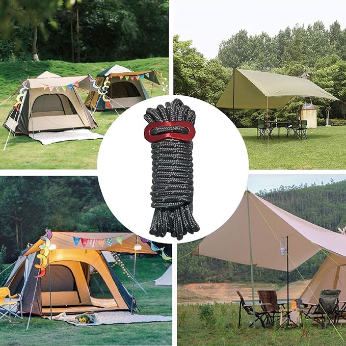 - EASY LENGTH ADJUSTMENT:Come with aluminum tensioners,allow for easy and sturdy adjustments,widely use for tent tarp tie down;