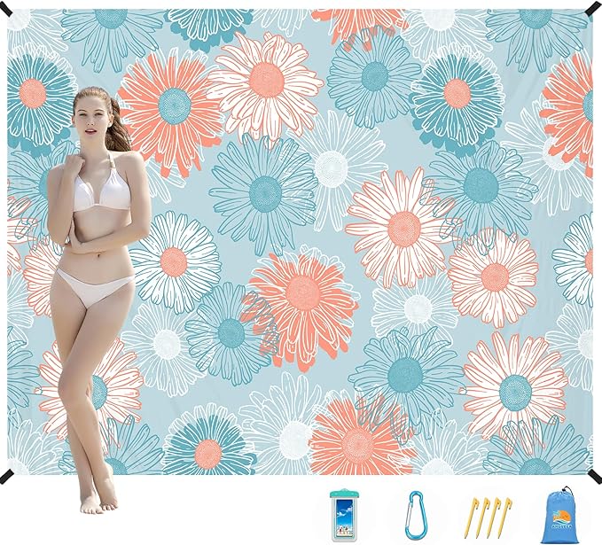 • 🛒PACKABLE SAND RESISTANT BEACH BLANKET MAT:The package includes 1 beach blanket,4 ground stakes for windproof,1 carabine for carry.You can enjoy a wonderful outdoor time with your family.If you have any questions,please don't hesitate to contact us.