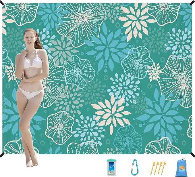 • 🛒PACKABLE SAND RESISTANT BEACH BLANKET MAT:The package includes 1 beach blanket,4 ground stakes for windproof,1 carabine for carry.You can enjoy a wonderful outdoor time with your family.If you have any questions,please don't hesitate to contact us.