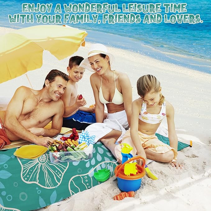 • 🌴BEACH BLANKET WATERPROOF SANDPROOF:78''×110'' size beach blanket is made of parachute fabric,odorless,can be used by 1-7 adults simultaneously.Rip-stop 210T polyester, lightweight and compact after folding.Easy to carry and use.