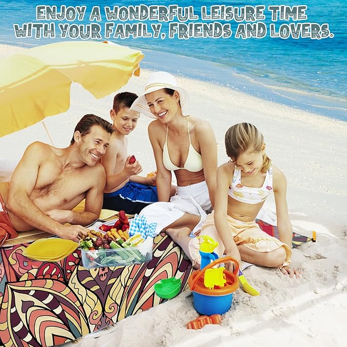 - 🛒PACKABLE SAND RESISTANT BEACH BLANKET MAT:The package includes 1 beach blanket,4 ground stakes for windproof,1 carabine for carry.You can enjoy a wonderful outdoor time with your family.If you have any questions,please don't hesitate to contact us.