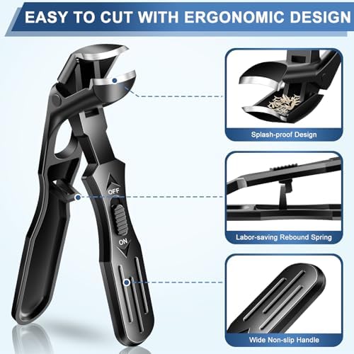 - γWide Jaw Opening Toenail Clippers for Thick Nailsγ The toenail clippers for thick toenails wide jaws are about 6 times wider than the opening of a regular nail cutter and can open up to 16mm, making it easy to trim the thick and hard nails with ease; The circular magnet on the tail that humanized design is more intimate, which can absorb the shrapnel and fix the sharp jaws, simple and safe