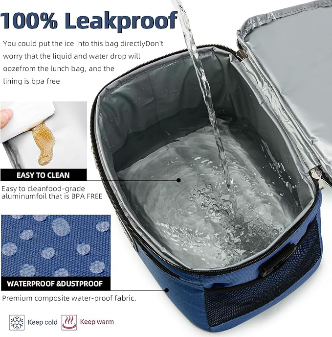 - Insulation/Cooling:Insulated lunch bag for women men is lined with food-grade PEVA material, filled with thicken insulation pearl cotton inside, and 600D polyester composite fabric on the outside, small lunch cooler bag is designed with triple insulation to keep food cold/warm /Fresh for hours, even better if you put an ice pack on the bottom, perfect for meals on the go, picnics, office lunches, road trips, the beach, and more.