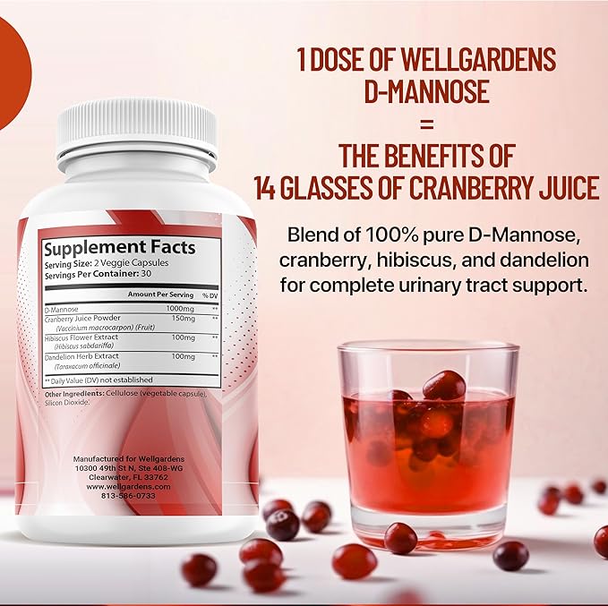 - Potent Blend: Our formula combines 100% pure D-mannose with cranberry and herbal extracts, including hibiscus and dandelion, for comprehensive urinary tract support.