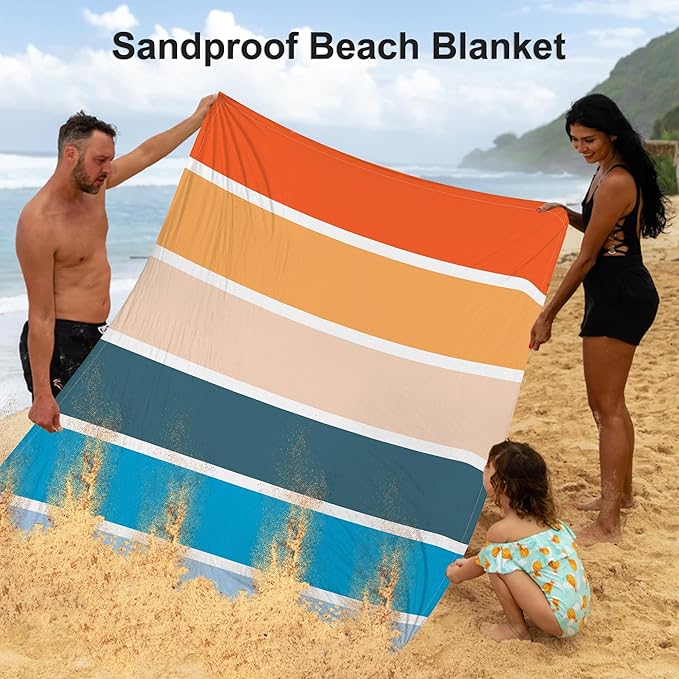 - Enjoy Your Sand-Free Spot - The sandproof beach blanket is made of polyester that prevents sand from sticking to the surface, keeping your belongings free from sand. You don't have to worry about sand collecting in your large colorful stripes beach blanket. Afterwards, our sand proof beach blanket is easy to clean and can be hand or machine-washable