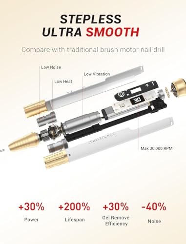 - Low Heat & Low Noise & Low Vibration: This nail drill machine is built of coreless motor, keeping the machine in low heat, low noise, and low vibration while using it. (Make sure let the machine rest after 20 minutes continuous use)