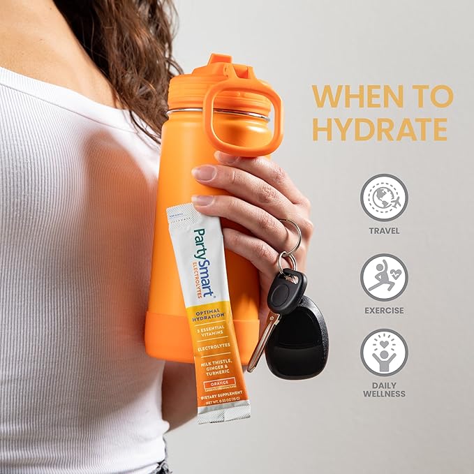 - DELICIOUS ORANGE FLAVOR: Convenient, travel-friendly, and easy-to-drink single-serve electrolyte packets taste delicious, are plant-based and vegan, gluten-free, and contain no caffeine. Also, try PartySmart Electrolytes in our tasty Lemon Lime and Tropical flavors for hydration support.