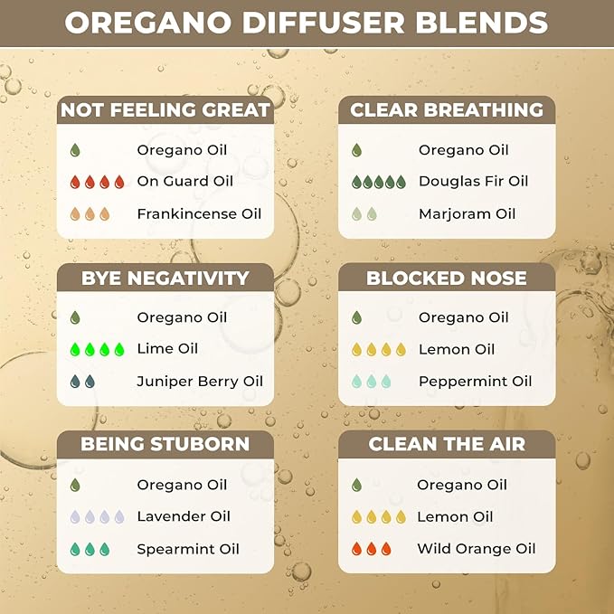 - π± Oregano essential oil blends exceptionally well with scents such as basil, Lavender, Tea Tree, and Rosemary. Blend 2-3 drops each with Jojoba Oil to bring out each oils natural factors and benefits for a calming experience.