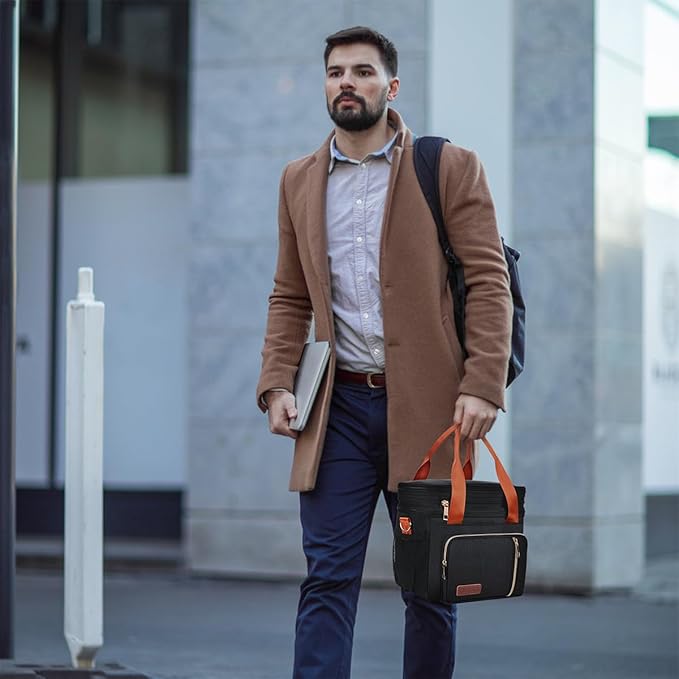 MIYCOO Lunch Bag & Lunch Box for Women Men Double Deck - Leakproof Insulated Soft Large Adult Lunch Cooler Bag for Work Black Orange