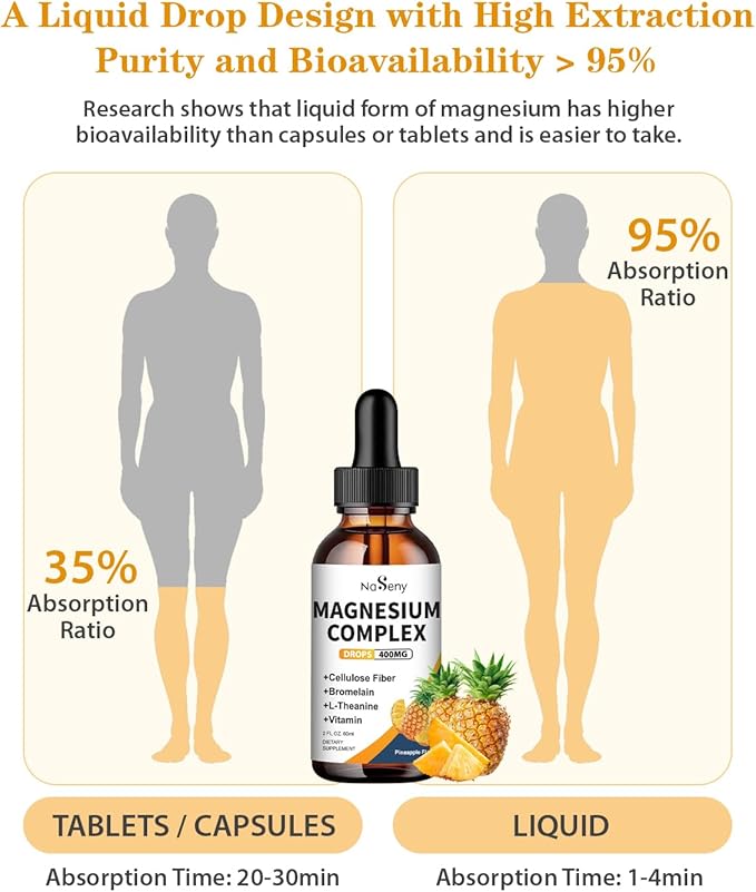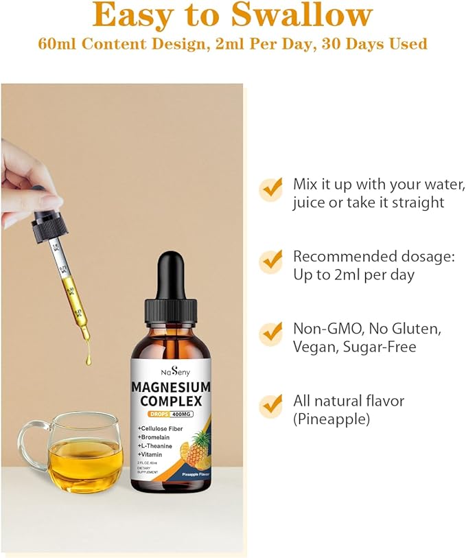 • 【Greater Sleep】NaSeny's liquid complex magnesium, containing magnesium taurate to aiding relaxation,improving sleep. Incorporate magnesium drops into your bedtime routine get a geater sleep.