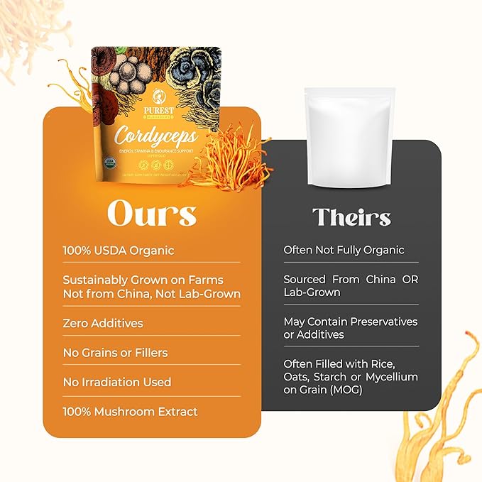 • GLUTEN-FREE & FILLER-FREE: Our Cordyceps Mushroom Extract Powder, or Cordyceps Powder, contains no additives or artificial flavors. Not only is it filler-free, our Cordyceps Mushroom Extract is gluten-free, dairy-free, soy-free, and especially no added sugar, which is ideal for those with dietary restrictions.