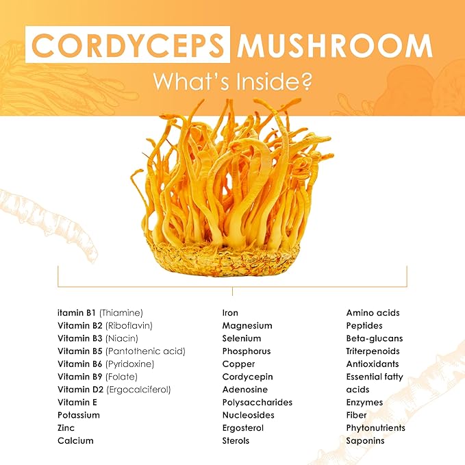 • ANTI-INFLAMMATORY AND ANTIOXIDANT PROPERTIES: Cordyceps extract powder contains potent antioxidants that help to reduce inflammation and protect the body against free radical damage.