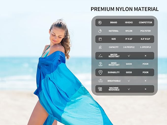 • 🐢WIND RESISTANT- Our sand-resistent beach blanket with 4 integrated sand corner pockets and 4 anchors stakes, provides dual wind-resistant protection to keep the blanket on the ground.