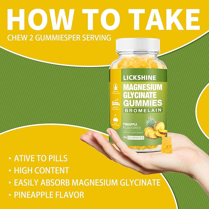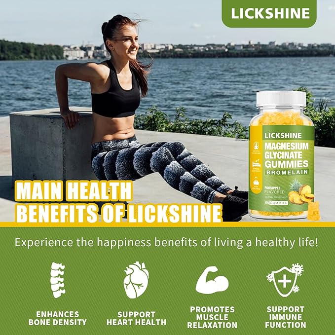- Daily Benefits: Lickshine magnesium glycinate gummies contain a powerful blend of ingredients to support the body. Whether you're running, working out, or playing other sports, Our gummies Ingredients from our gummies go where it's needed most, and support good physical function.
