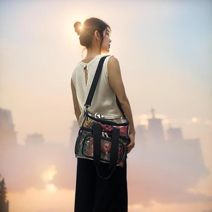 - ✿ Stadium Approved: FlowFly clear tote bags for women and men fully comply with the clear bag policy, adhering to the size limit of 12x12x6 inches. This makes it a suitable choice for venues such as stadiums, concerts, sports events, festivals, supermarkets, and more, facilitating easy and fast passage through security lines.