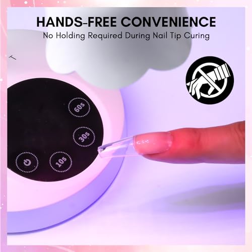 - Seamless Nail Fit and Hands-Free Curing:This nail glue for acrylic nails fills nail gaps effortlessly, ensuring a smooth transition from natural nail to enhancement. Plus,no need to press the nail tips under the lamp with your hand, freeing up your hand for a more comfortable experience