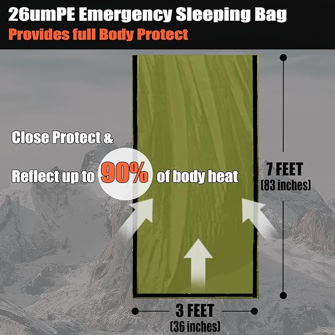 - Tough and Last Emergency Sleeping Bag: Made of extra thick 26umPE material and featuring extra wide tape seams, is designed to be tough, durable, and reusable.