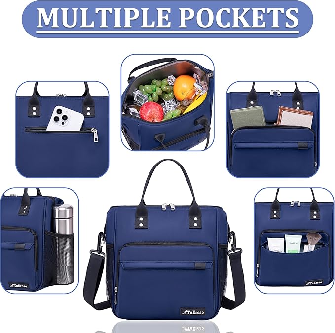 - PORTABLE & CONVENIENCE: TuErcao insulated lunch box features one reinforced handle on top for carrying as a handbag or tote bag. And comes with a detachable & adjustable shoulder strap which can be adjusted from 15' to 27' for carrying as a shoulder bag or crossbody bag