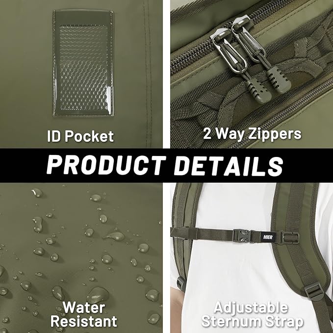- Functional Construction ---- Daisy chain loops and 'D' rings on strap for extra attachments; Innovative compression strap system helps compact large loads; Smooth 'MIER' brand zipper and strong buckles, box-stitched on every stress points, being more durable and tough, make MIER bag ready for a lifetime of adventures