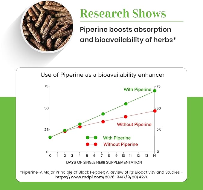 - Maximized Absorption with Long Pepper/Piperine: Potentiated with Long Pepper, our formula enhances the absorption and bioavailability of Shatavari with Piperine, ensuring maximum potency and effectiveness.