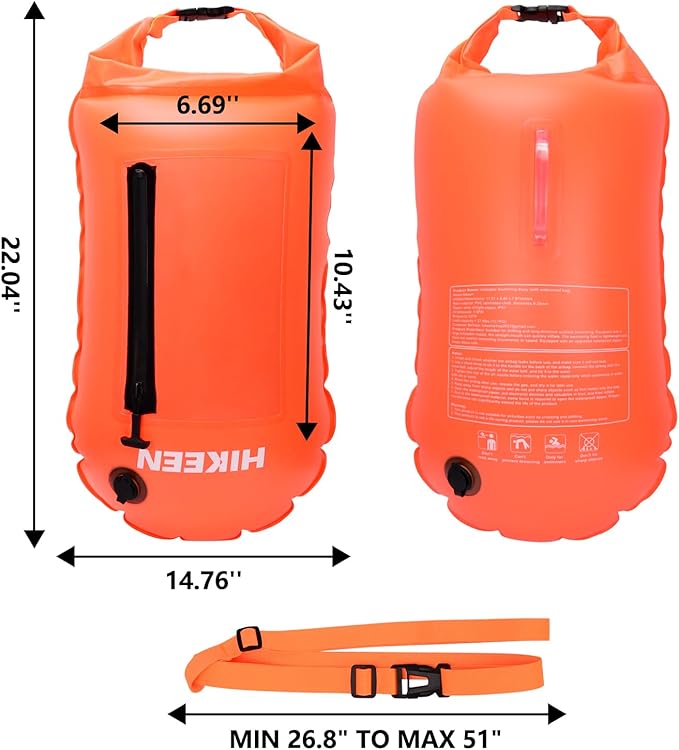• [VISIBILITY IN OPEN WATER] The Hikeen Swim Buoy is a bright orange colour that stands out in the water and is clearly visible in open water, it's perfect for open water swimmers, triathletes or anyone else who wants to increase their confidence in the water.