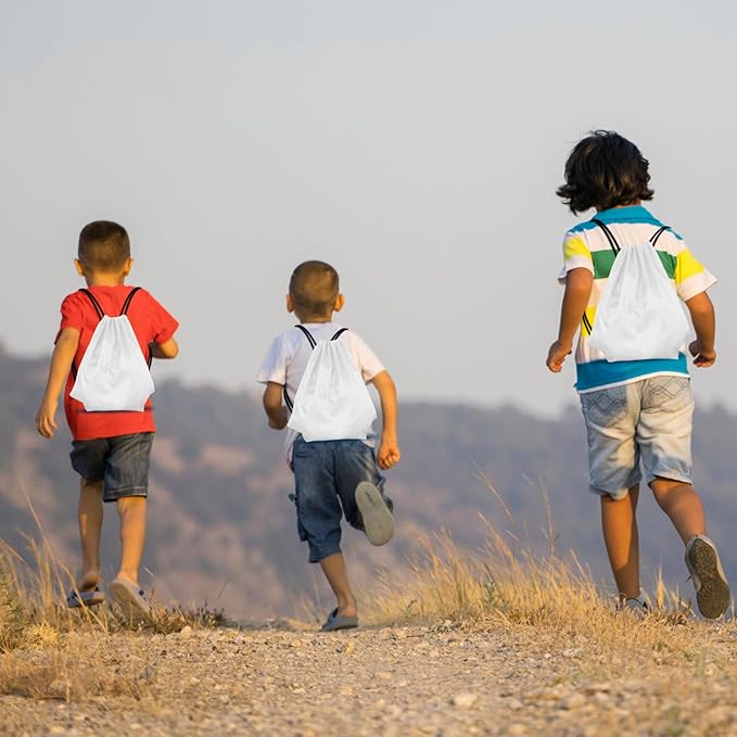 KUUQA 12 Pcs Drawstring Backpack Bags Bulk White Drawstring Bag Foldable Gym Bag Sports Cinch Sack String Backpack Storage Bags for Women Men Shopping Gym Travel Sports