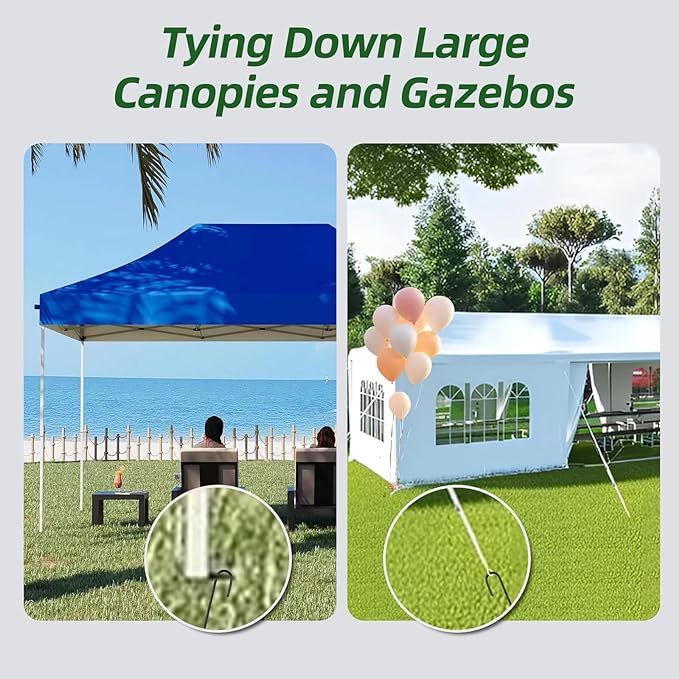 • 【SHARP TIPS】The j hook stakes have a chiseled end to facilitate ground penetration, the metal steel is sturdy and does not deform when hammered into tough ground. These ground stakes are thick and heavy duty and they will not budge in a strong wind.