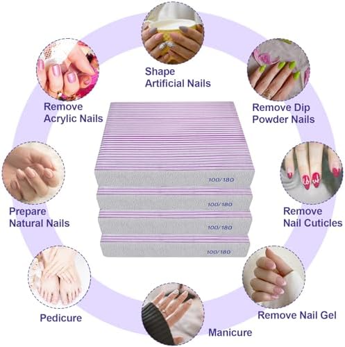 - 100/180 Grit Dual-Sided Nail Files: Each package contains 12 double-sided nail files, with one side featuring a coarse 100-grit texture, ideal for acrylic and thick nails, while the other side boasts a fine 180-grit texture, perfect for buffing away nail surface imperfections or refining natural nails.
