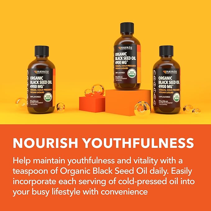 - Organic Black Seed Oil for Immune Support - Organic black cumin seed oil may help support a healthy immune system and overall wellness. Each serving contains 4.9mL of Organic Black Cumin Oil (Nigella sativa), labeled as 4.9g (4900mg), based on its density of ~1.0 g/mL, ensuring industry-standard measurement of the density calculation.