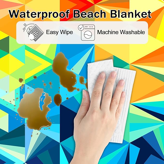 - Sand & Water off - Adding a sandproof waterproof beach blanket to your beach accessories for vacation is a great idea if you love going to the beach. Water drops can be easily wiped off our large beach blanket. Shake this large outdoor blanket off when you are done using it, and all the dirt and sand will fall off