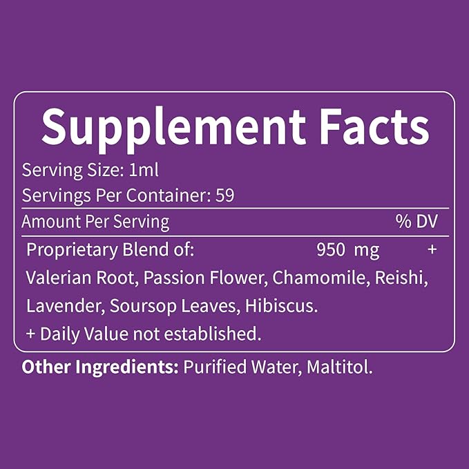 Valerian Root Sleep Support Drops, Passion Flower, Chamomile, Lavender, Soursop Leaves, & Hibiscus Herb Extract Supplement Tincture for Sleep Soundly & Deeply. Perfect with Sleep Sounds. 2oz