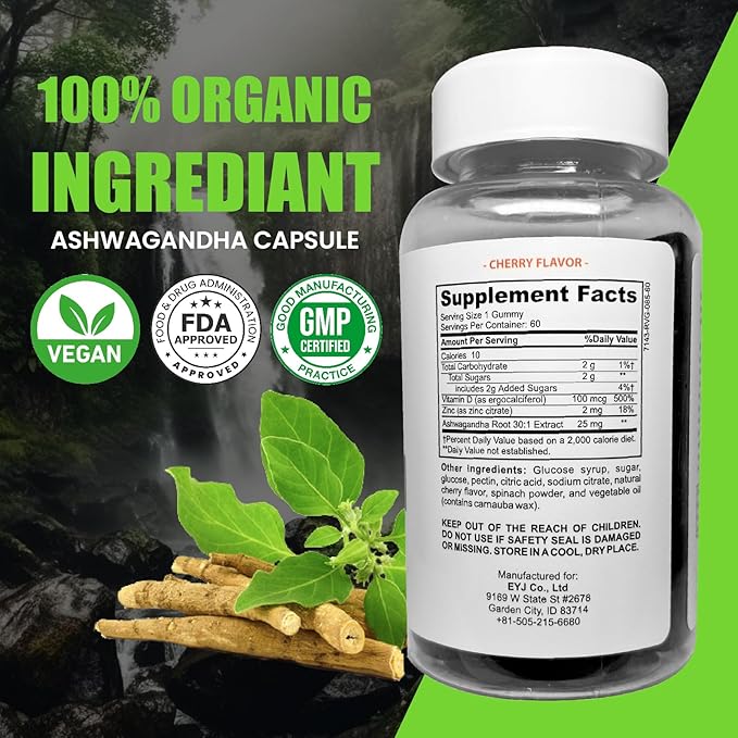 - - Boosts Cognitive Function- Enhance memory, focus, and the ability to process information with regular intake of Ashwagandha, supporting overall brain health. - Improves Sleep Quality- Experience restful nights with Ashwagandha's adaptogenic properties that help in regulating sleep patterns and improving sleep quality. -Supports Immune System- Packed with antioxidants, Ashwagandha strengthens the immune system, aiding in maintaining good health and warding off illnesses. -Safe and Natural- Our Ashwagandha is organically grown, non-GMO, and free from artificial additives, ensuring you receive a high-quality, natural supplement.