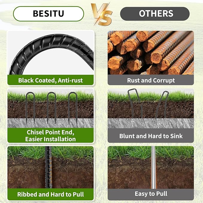 - 【Two Year Warranty】8-pack u shape wind stakes. Order Besitu metal stakes today, you would love it! If not, please feel free to contact us, we would provide the best solution within 12 hours.