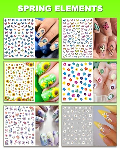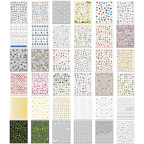 winthrop 36 Sheets All Holiday Nail Art Stickers, Mixed Season Nail Decals Set for All Year, Spring Summer 3D Self-Adhesive Colorful Pegatinas Uñas Daisy Butterfly 4th of July Halloween Christmas
