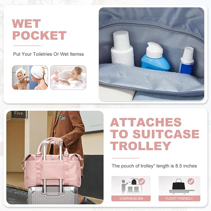 - Extra Points Weekender Bag: The travel bags for women come with a removable adjustable strap, you can carry it as shoulder bag,handbag or cross bag as you like.The weekender bags for women made of high quality tear and water resistant nylon fabric