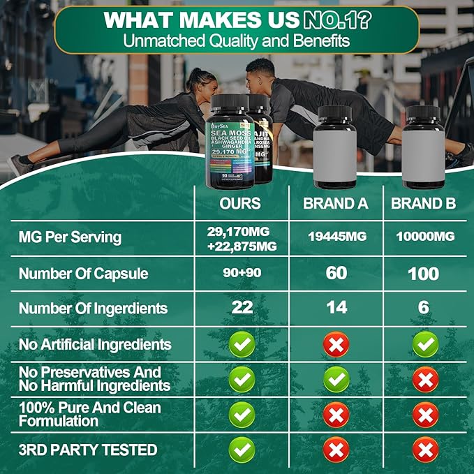 - 【VITALITY SET】 - This special Sets combines Shilajit capsules, enriched with 8 potent ingredients, and Sea Moss capsules, enriched with over 15 potent ingredients. Experience the overall benefits of Black Seed Oil, Rhodiola Rosea, Ashwagandha and more in two supplement. discover the power of “all-in-one” supplements today!