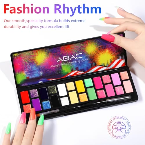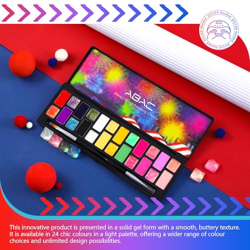 ABAC 24 Color Hema-Free Solid Gel Nail Polish,Ombre Gel Nail Polish,Pat Paint Nail Gel- Neon Pink,Yellow & Midnight Shimmer All-Year Clump-Free for Weddings,Date Nights,Office,w/Dual Brush