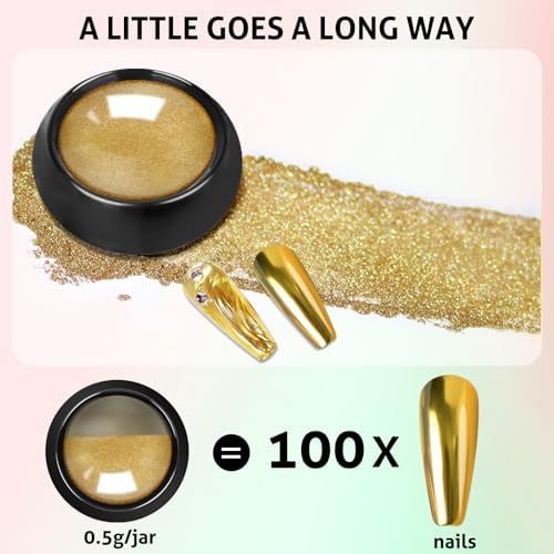 - EASY TO USE & WIDE APPLICATION - Gold silver chrome nail powder is easy to use, suitable for both beginners and experts. No special manicure skills required, just follow the instructions and you'll get a stunning mirror-effect manicure. Rainbow chrome nail powder can be used on U V gel nails, acrylic nails, natural nails, or can be mixed into gel polish to DIY new gel nails.