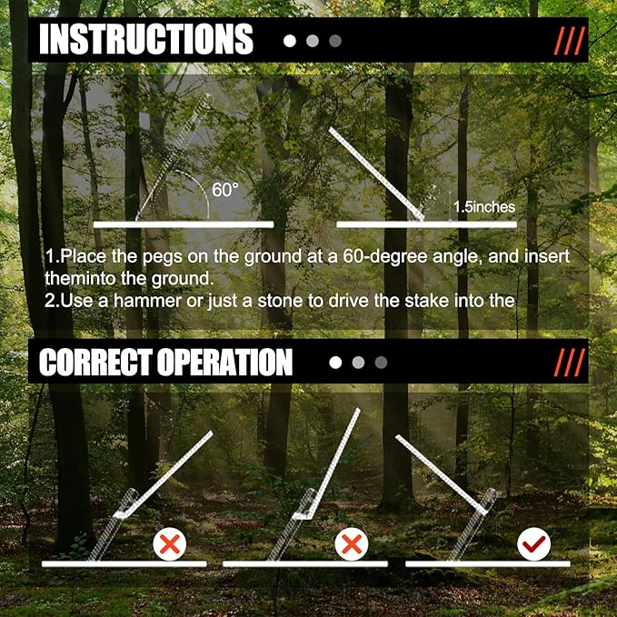 • Easy Installation: Featuring an ergonomic design with pointed tips, our tent pegs allow for easy insertion into various terrains. The sharp edges provide a secure grip while minimizing the effort required for installation. Say goodbye to struggling with flimsy stakes that bend or break under pressure - our premium tent pegs are built to withstand the rigors of outdoor conditions.