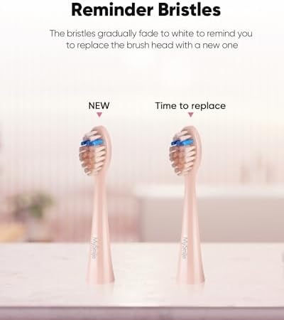 - 3 TOOTHBRUSH HEADS WITH REMINDER BRISTLES - MySmile Series Electric Toothbrush comes with 2 replacement toothbrush heads, the bristles are made of American Dupont bristles and German color-changing bristles. The toothbrush bristles are healthy, harmless and environmentally friendly without shedding. Color-fading bristle will remind you to replace your sonic toothbrush head. Each brush head is recommended to be used for 3 months.