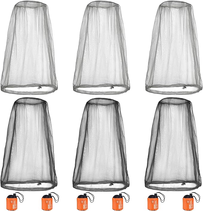 6 Packk Mosquito Covers Wearable Head Net Face Mesh Protecting Net Mosquito Fly Insects Bugs Preventing for Outdoor