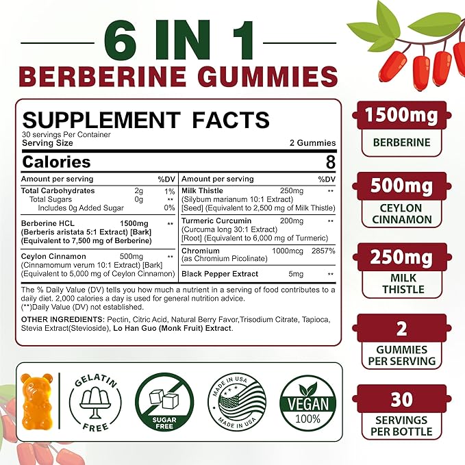 - Made in the USA, Quality Guaranteed: Nextdia Berberine gummies are produced, tested, and bottled in a third-party facility in the USA to ensure exceptional quality and consistency. They are free of soy, gluten, and artificial additives such as colors and flavors. We stand behind every purchase with a 100% satisfaction guarantee. If you have any questions, please contact us, and we will resolve them promptly.