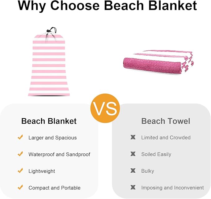 - Outdoor Versatility: Beyond the beach, these versatile outdoor blankets are perfect for travel, picnics, camping, and hiking. With eyecatching pink & white stripe design, you can quick spot these blankets, with a choice of modern minimalist style.