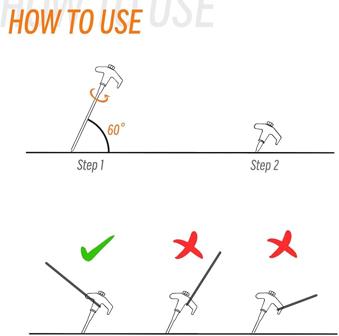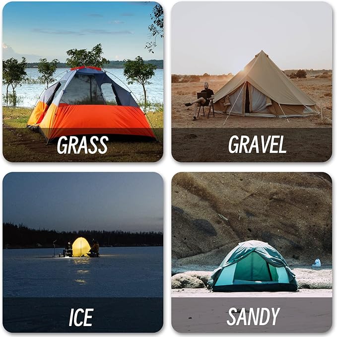 • Easy To Use: built a tent is never so simple. TENT Stakes is designed for easy installation. The rope has been cut into perfect length in advance to save your time and energy. With the help of rope -free electric diamonds or shocks, these easy -to -use piles will fix your tents, tents, gazebo, sunbuds, ropes, or waterproof cloths on the ground in a few seconds.