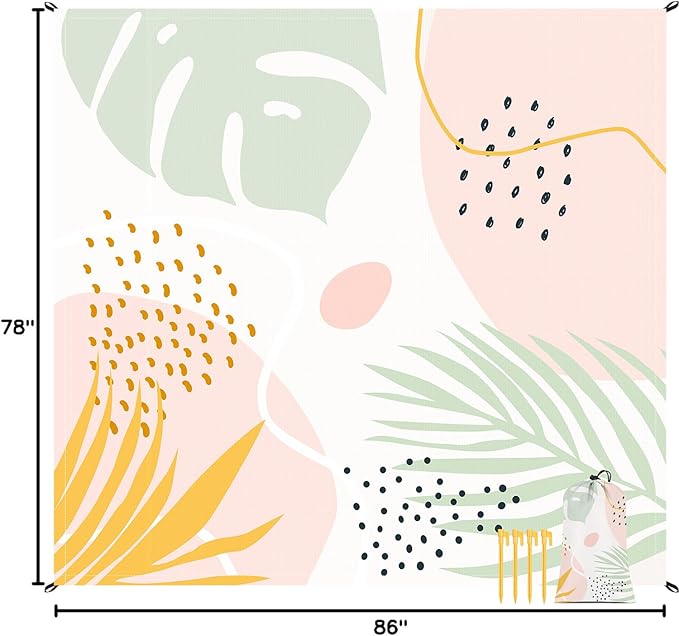 • Essential Beach Accessory - Using 4 sand pockets and 4 stakes to secure the extra large beach blanket in place, you can prevent it from blowing away in high winds. With this personalized morandi leaf beach blanket, you'll stand out during camping, travel, or other outdoor activities