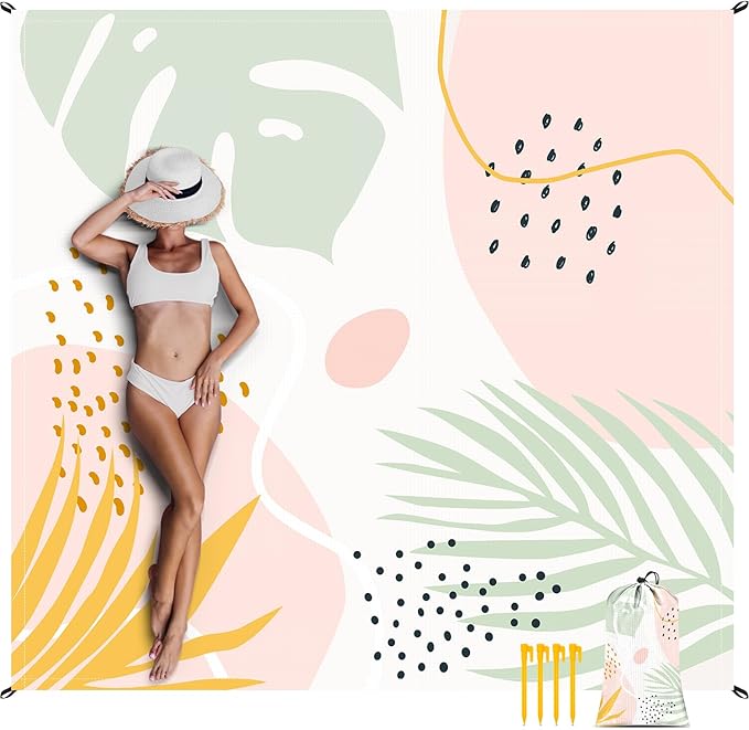 • Enjoy Your Beach Day - Setting up a waterproof sanproof beach blanket on the beach, and enjoying tasty food and drinks. You can shield yourself and your meal from insects and wet surfaces with a waterproof beach blanket. If anything spills on the beach blanket, it can be easily cleaned with the 210T polyester waterproof material