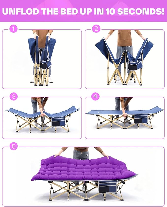 - Double sided Pocket Design: The two lagre pockets of sleeping cots for adults keep all your things handy right next to you! The ultra convenient side pockets store sunglasses, books, phones, headphones, water bottles and so much more!