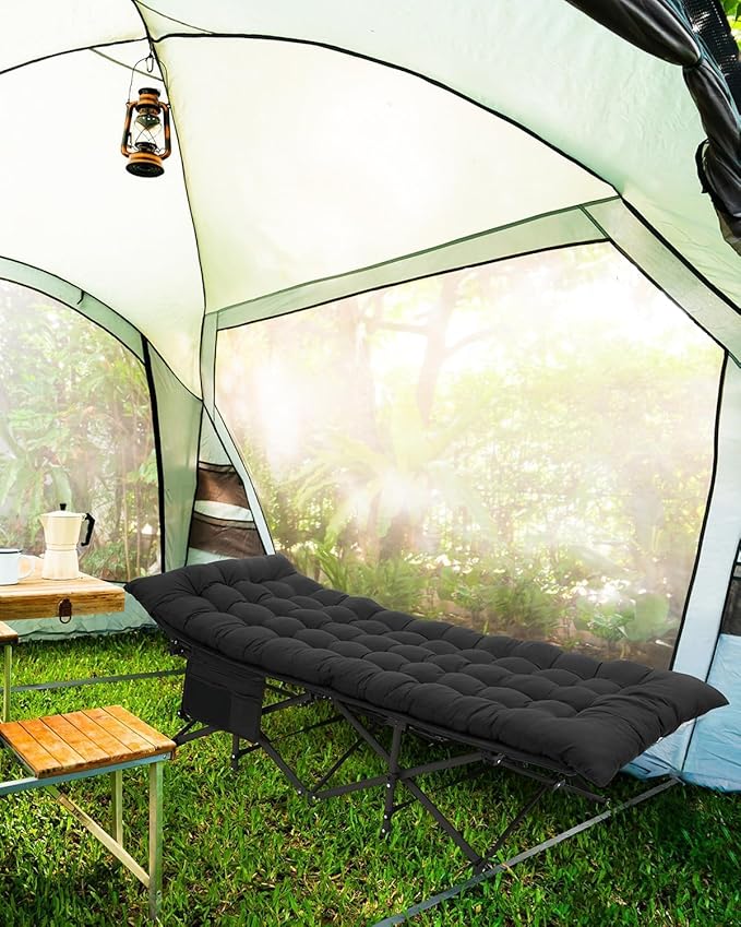 - Comfortable Mattress: Sportneer Camping Cot with mattress, soft pad add extra comfort, you can sleep more comfortably in this portable foldable bed for camping. In summer, the camping cot for adults can also be take away to increase the breathability.