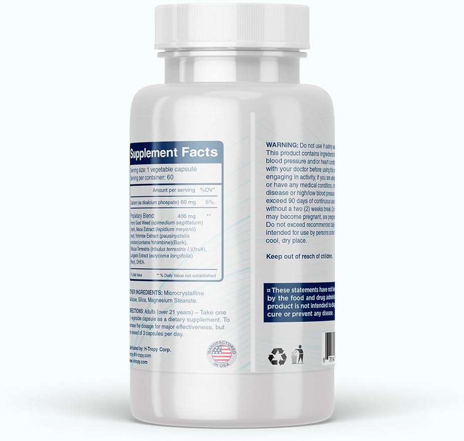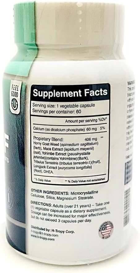 - Special Ingredients : Yohimbe Extract, Horny Goat Weed, Tribulus, DHEA, Longjack Exctract, Maca Extract