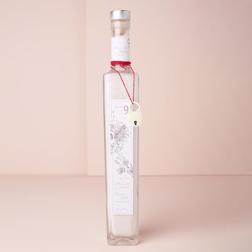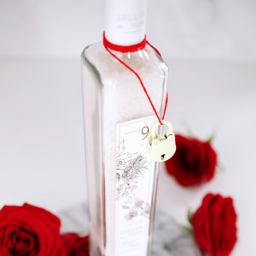 - ELEGANT PACKAGING: Strikingly romantic, this uniquely slender glass battle of bathing salts features a trailing floral illustrated label in black and white. This keepsake includes a sweet lock charm tied with a red cord, matching the In Love Bubble Bath key.